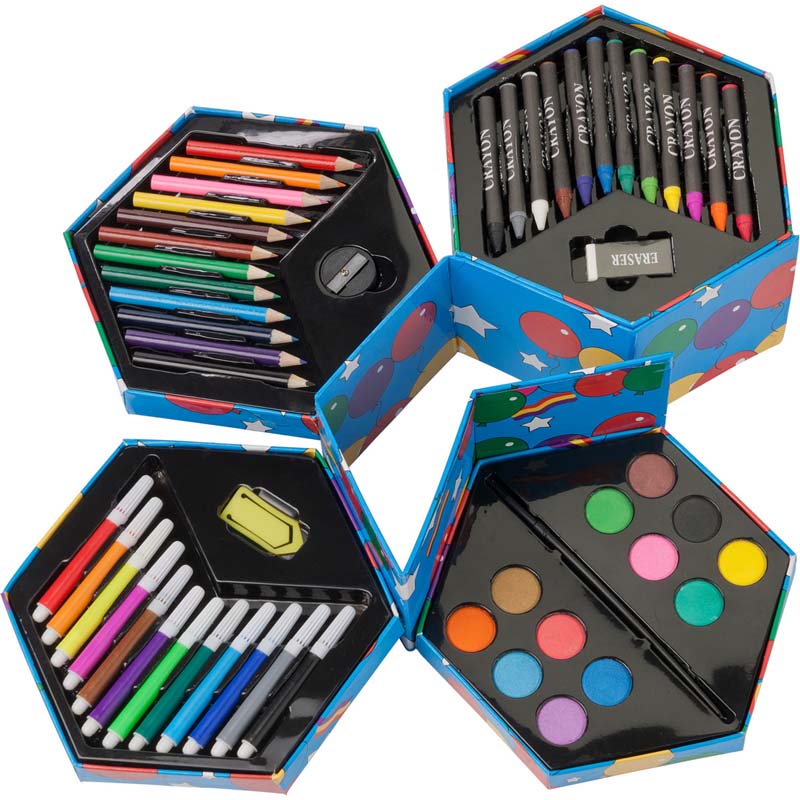 Set à dessin de 56 pièces présenté dans une boîte cartonnée