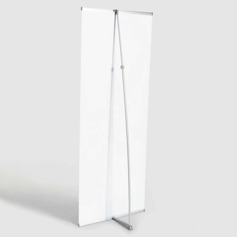 Système roll-up standard composé d’une bannière imprimée, d’un support en aluminium avec « tige de tente » en 3 pièces et d’une sacoche de transport confortable