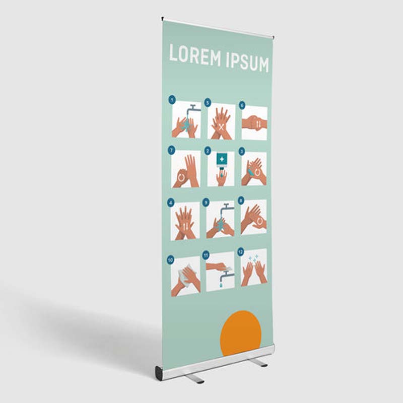 Système standard roll-up en aluminium, à bannière imprimée, « tige de tente » en 3 parties et sac de transport confortable