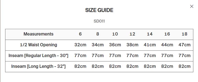 - Longueur des jambes au choix :