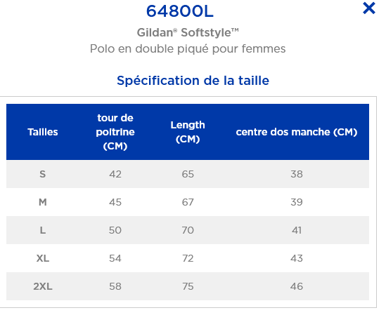 - Existe aussi en coupe Homme : voir le modèle Gildan 64800