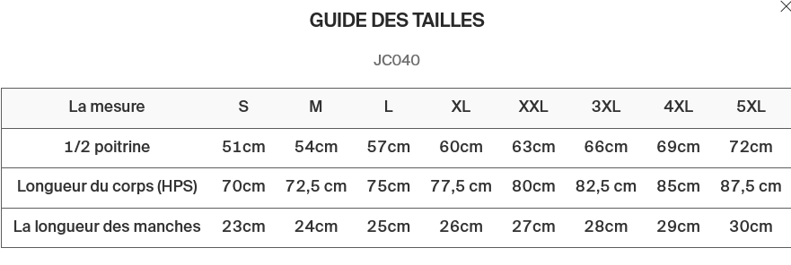 - Tailles de XS à 5XL (*XS et 3XL à 5XL disponibles dans certaines couleurs - nous contacter)